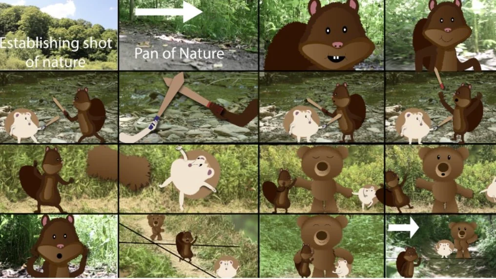 To get the reference backgrounds for the storyboard I went to my local woods and first got digital 3D scans of each environment. This allowed me to get different perspectives of the desired shots. I did this through an app called Scaniverse and a tutorial I found on YouTube.
