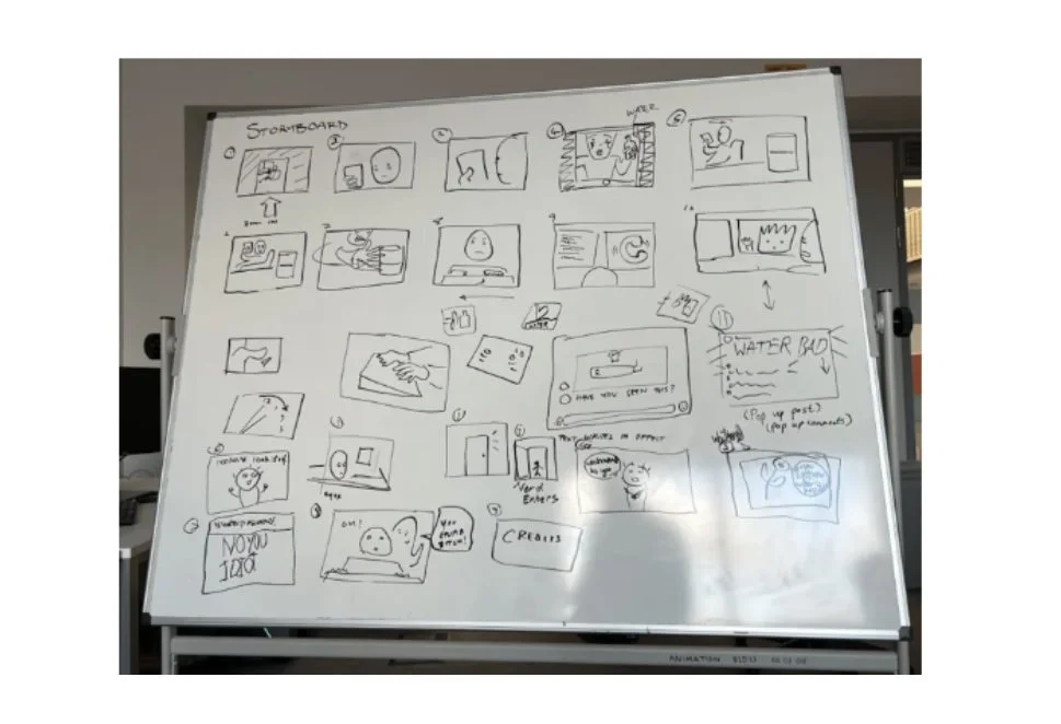 When presenting to our mock client Rachel our progress I was instructed to make the posters more dynamic by having them stick to the wall with push pins, frames, and tape. The end result is clearly displayed in the final product.Through the past month many aspects of our post production process have changed. Tish was not able to rig Poppy so we were left with hand drawing. Courtney had the rig for the nerd completed but ultimately didn’t include it in the final animation. This left me feeling unsure as I had not done similar animating with my previous projects. Tish saw me struggling and went ahead and separated all of Poppy’s body parts. So I could animate in a similar manner to the projects I have completed before. Through asking everyone for advice along with Youtube tutorials the end product is cohesive.