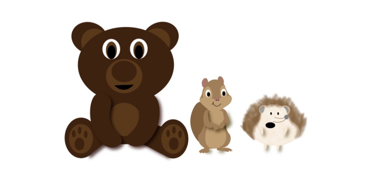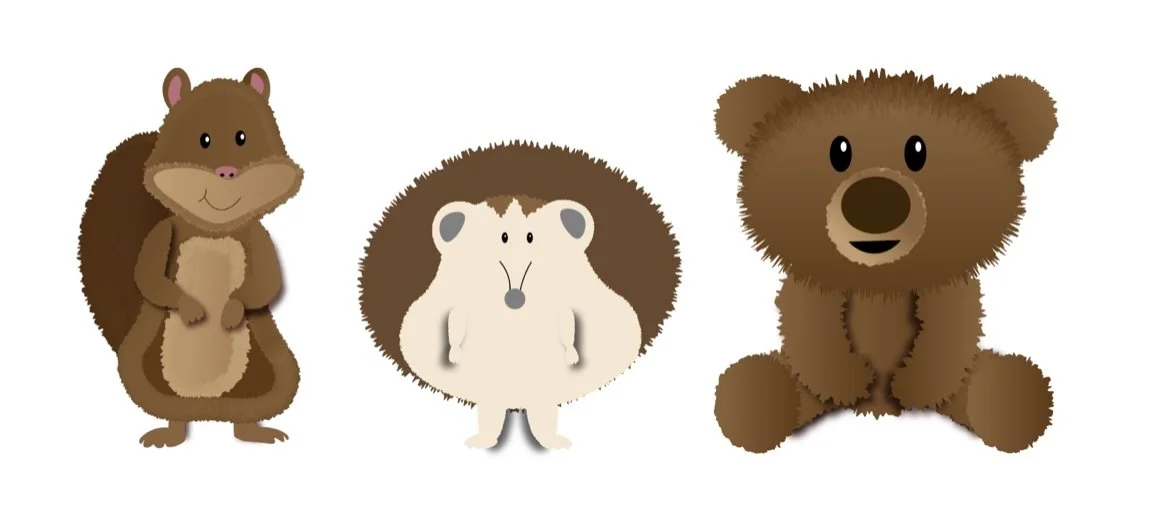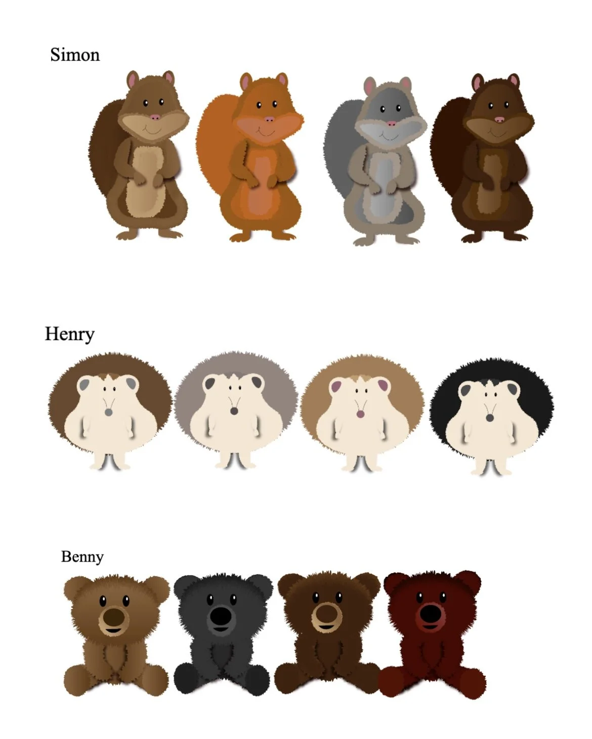 Main Characters all young Benny the Bear, Simon the Squirrel, and Henry the Hedgehog