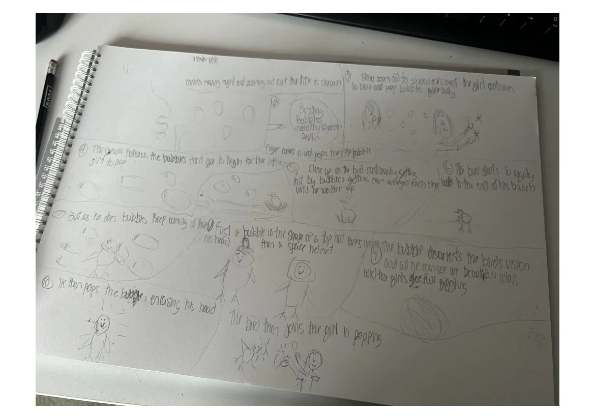 Showing the lecturer the finished storyboard she was able to give back feedback about how the bird should not be front facing but at an angle to make it more interesting. Also the girl on the third storyboard should be on the left side of the screen. After that talk I realized my two years in news had got me used to that boring and plain camera angle and now I had to think in more cinematic ways.